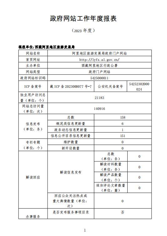 阿里地区旅游发展局政府网站2023年工作年度报表
